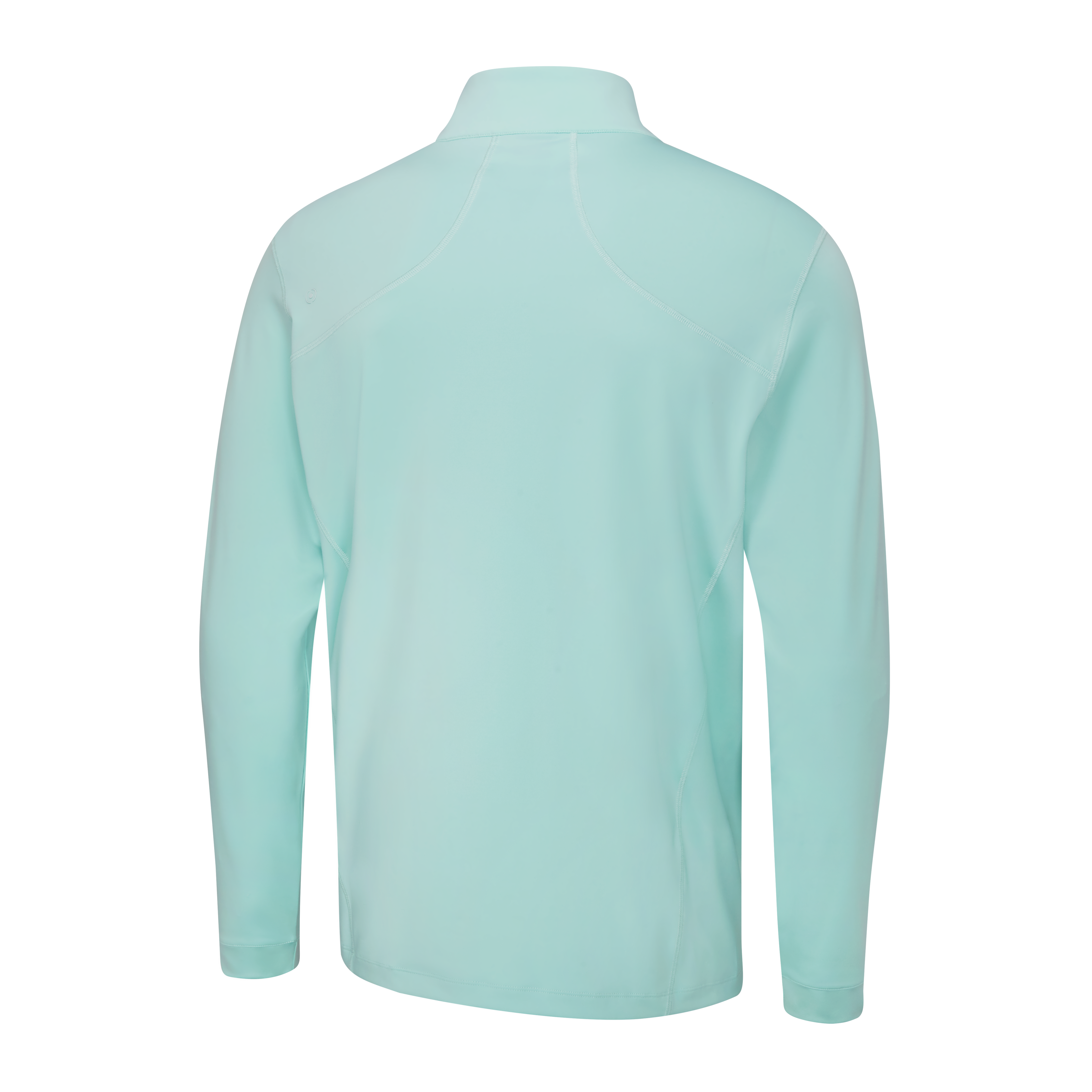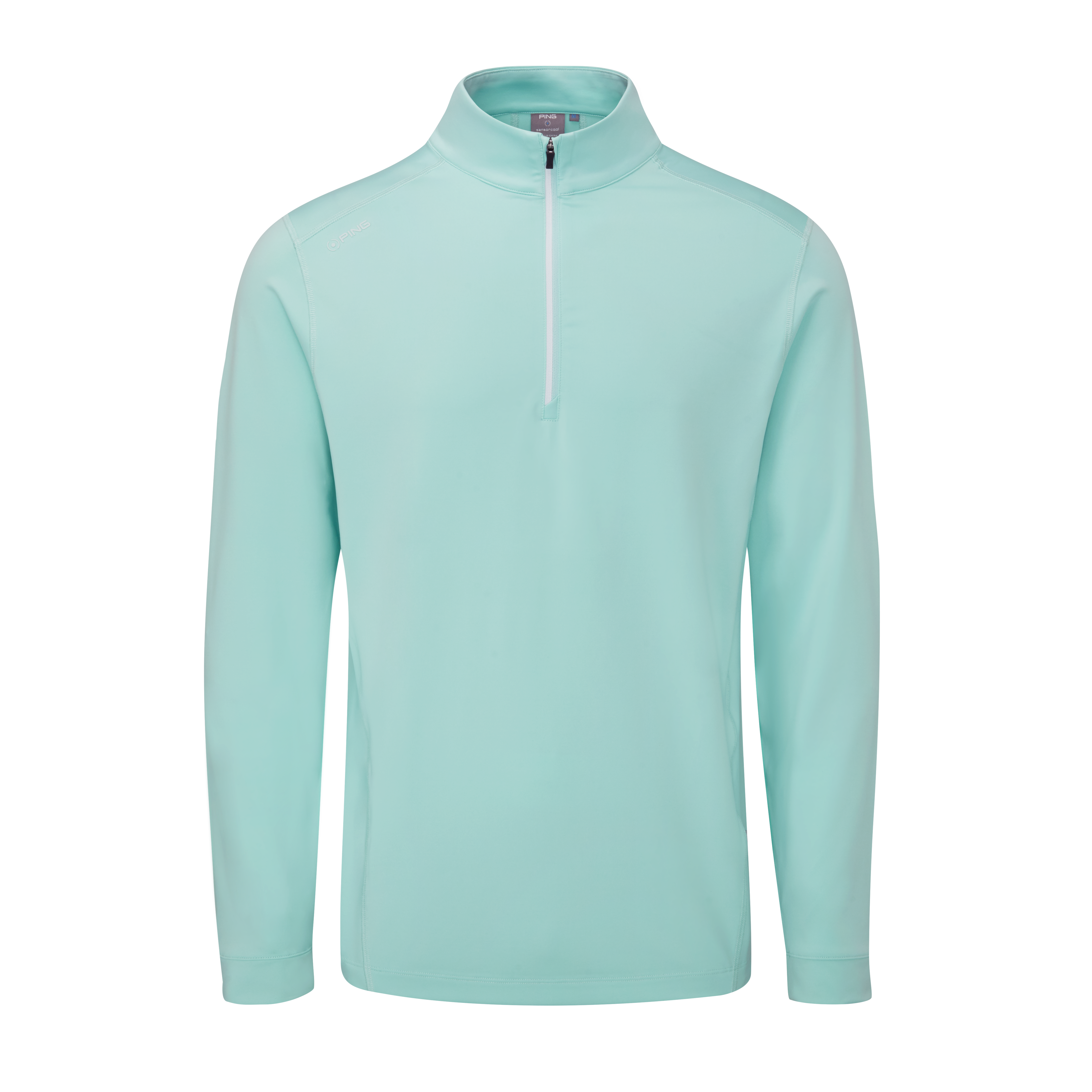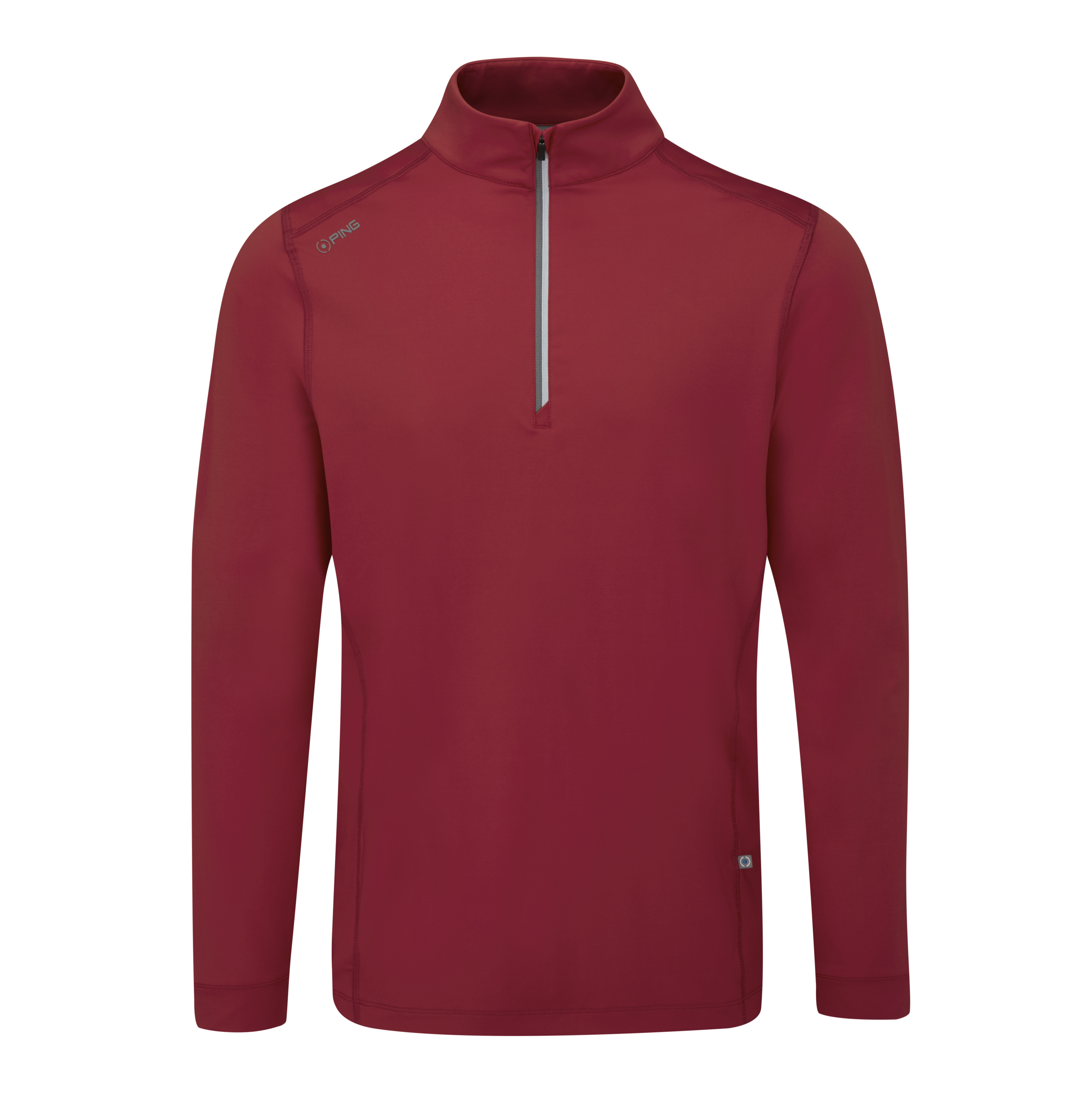 Stay comfortable and stylish with the men's Latham Half Zip Midlayer in Black. Crafted for lightweight warmth and moisture-moving comfort, this golf midlayer features a two-tone half-zip design for a sleek, modern finish. Self-fabric cuffs and flatlock seams ensure optimal fit and durability. The PING branding on the shoulders adds a premium touch. Ideal for layering during colder months.
