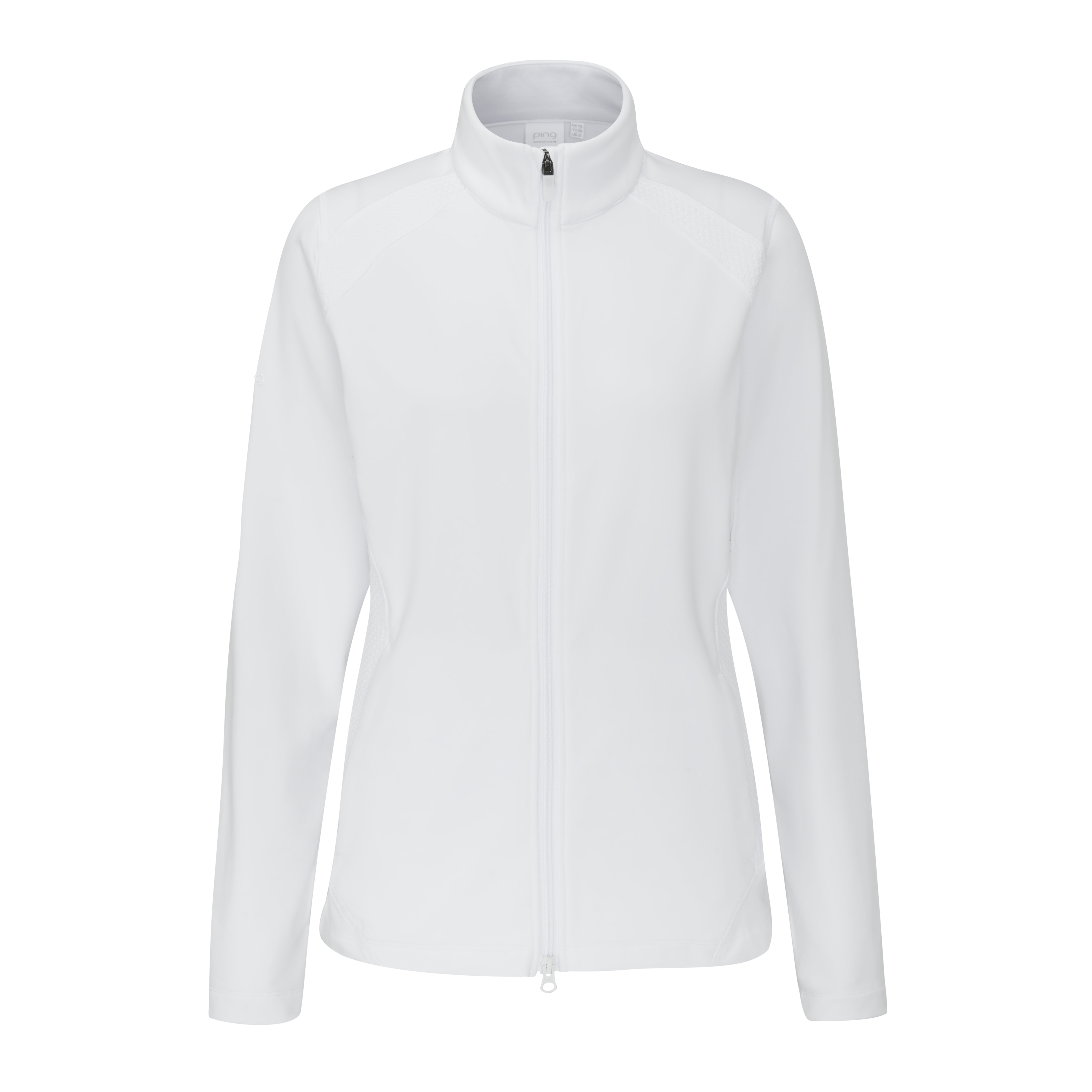 Built with a streamlined silhouette, the Eda Ladies Lightweight Full Zip Jacket in Black delivers subtle structure and on-course flexibility. Jacquard panelling adds depth to the design, while a two-way front zip and twin zipped pockets provide day-to-day practicality. Finished with a tonal PING logo at the sleeve.