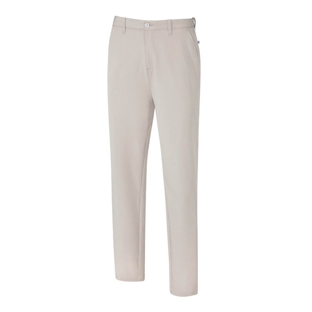 Experience freedom of movement with the men's Locke Slim Fit Trousers in Pearl Grey. Designed for lightweight comfort, these golf trousers feature a tailored slim-leg fit for a sleek profile on and off the course. Functional details include two front pockets, a tee pocket, and two back pockets with gripper tape for secure storage. The PING Eye gripper elastic waistband ensures all-day comfort and a perfect fit. Available in various waist sizes and leg lengths.