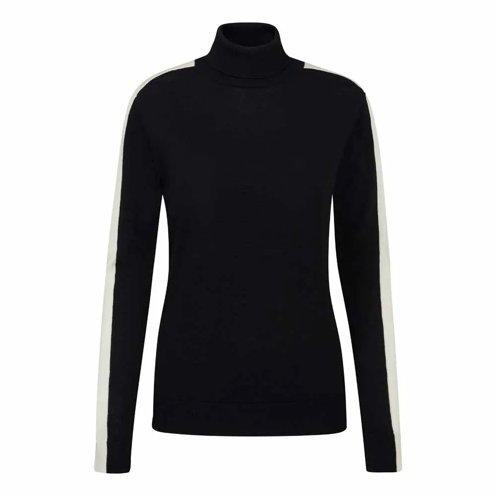 • 1x1 rib roll neck, cuffs and hem.