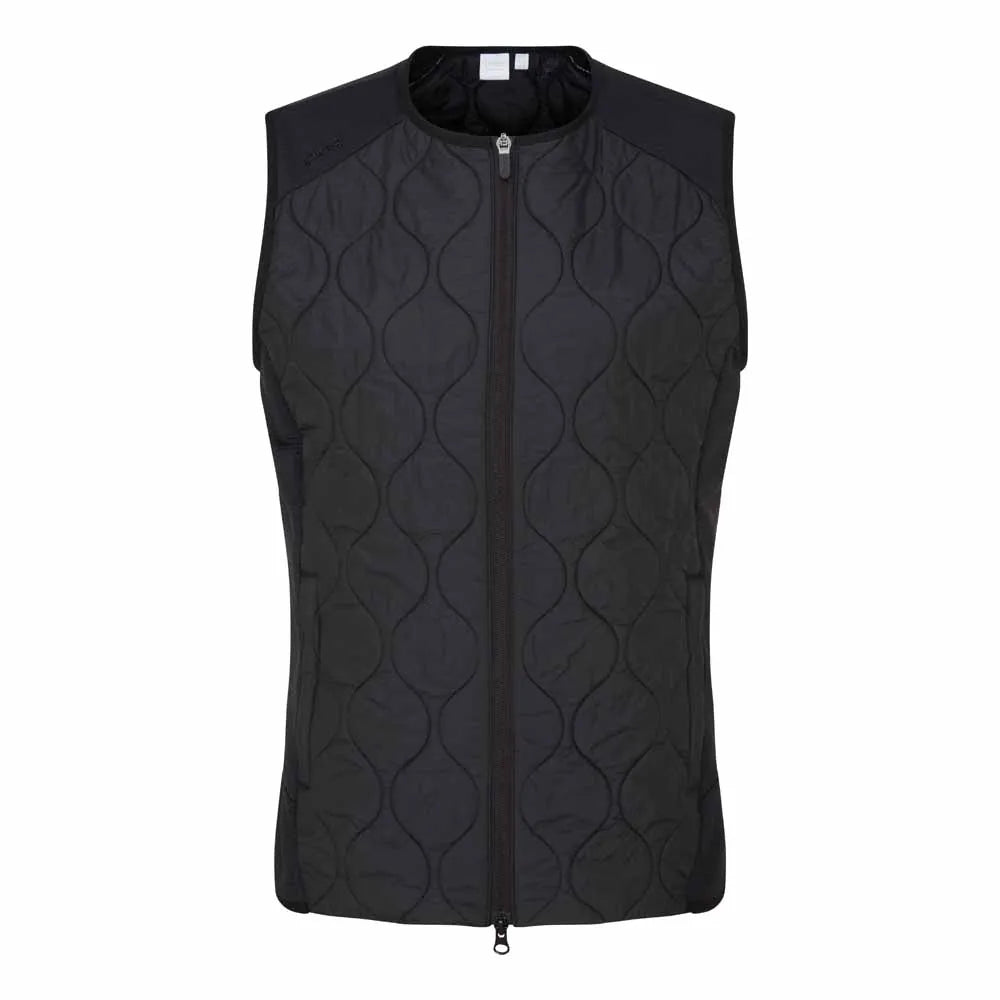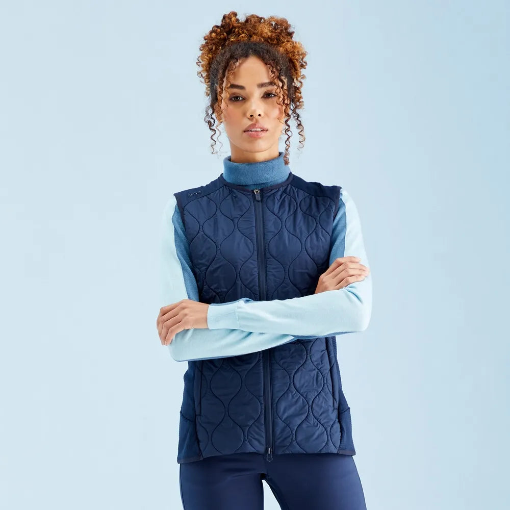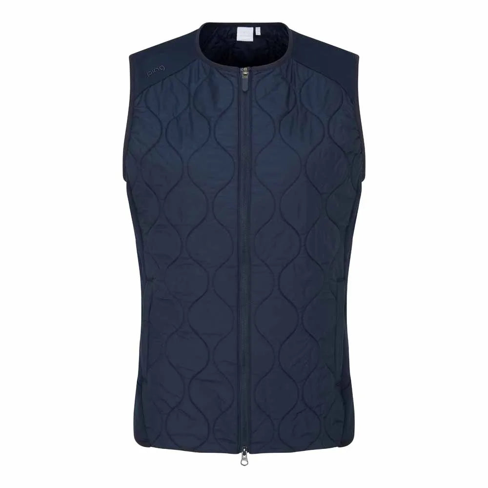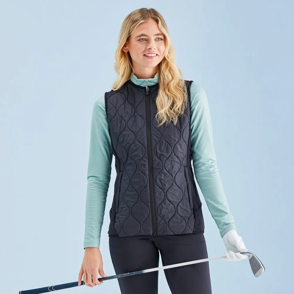 Timeless and versatile, the Seren Ladies Insulated Collarless Vest in Black is the ultimate sleek mid-layer for colder conditions. Built with Clo® Vivo Extreme insulation, it offers thermal performance without bulk, while the stretch fleece detailing allows for fluid movement throughout your swing. Water-resistant and lightweight with subtle PING branding, this vest is the perfect blend of style, comfort and performance. • Collarless insulated vest, engineered with Vivo Extreme.